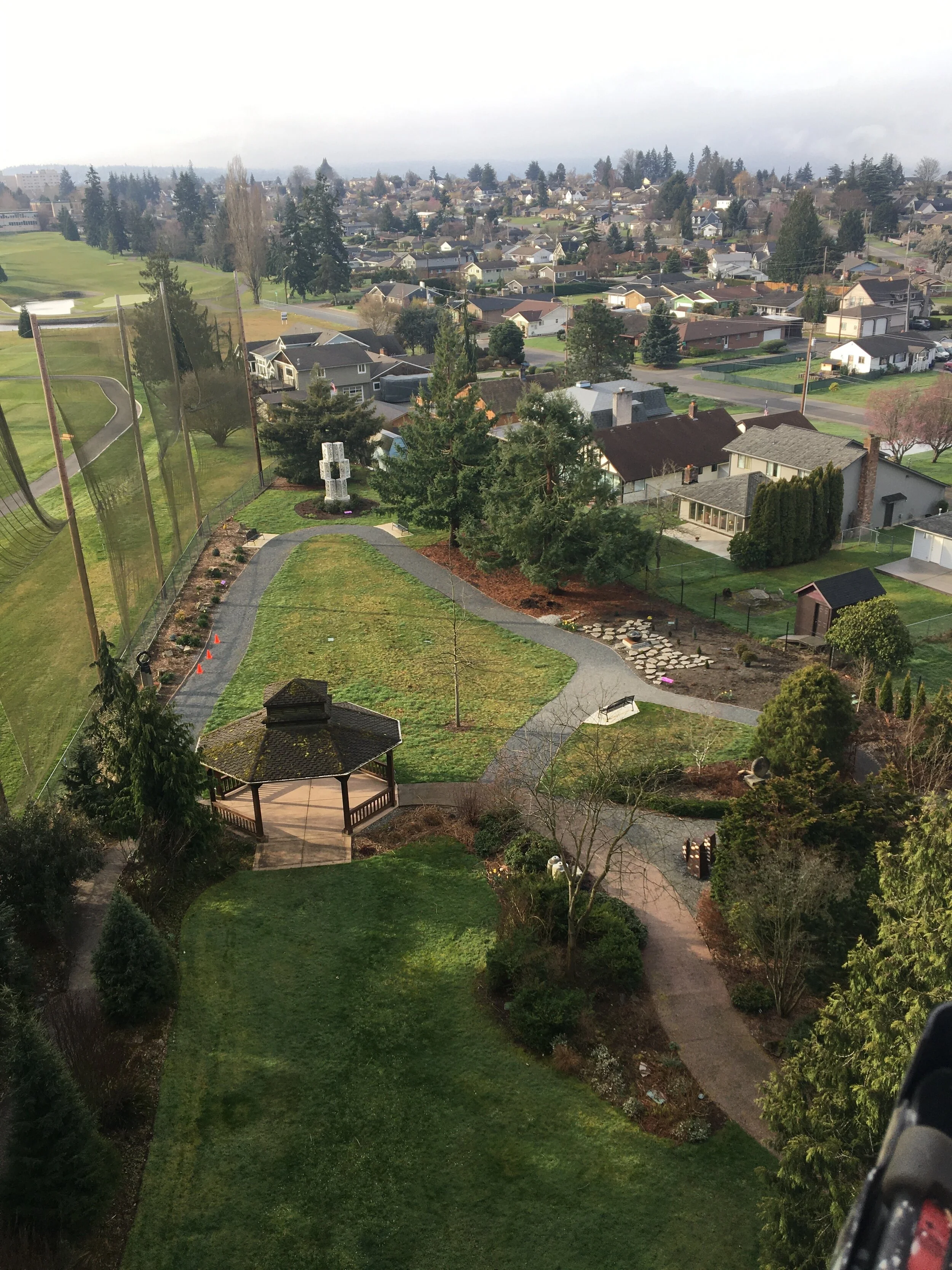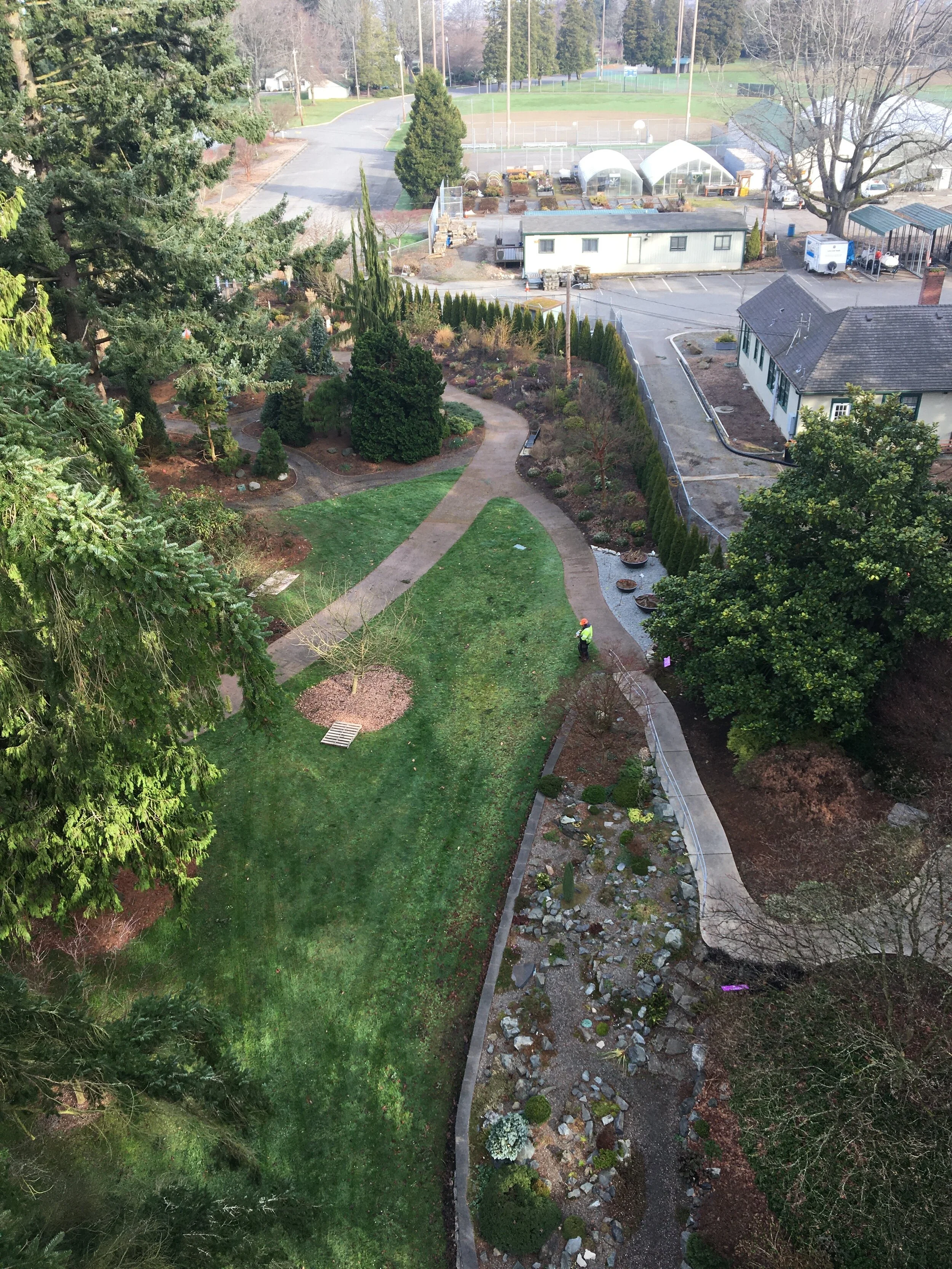 The lengths some people will go to to catch the perfect shot! Brad Cooper, Everett Park’s Horticulturist, making like an eagle while pruning high up in a lift at the Evergreen Arboretum. I think his kids must really like Take Your Kids to Work Day.